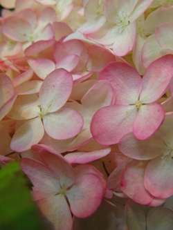 カルポス。↓はあじさい「ミナズキ ピンク」。今夜のカフェの活け込み