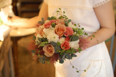 (写真は結婚記念日のお祝いアレンジ。バラ「イプノーズ」、ラナンキュラス、