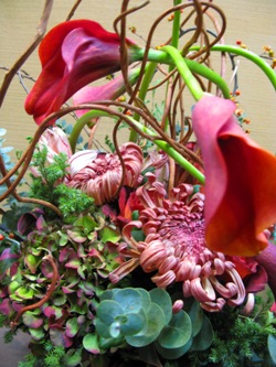 アマリリス「カリスマ」、秋色あじさい、ドラセナ、ツルウメモドキ、ヒムロ杉、