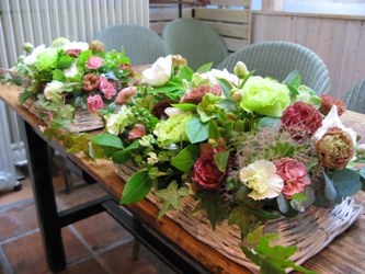 オオデマリ、バラ「イプノーズ」、アストランティア、ユーカリ など。)