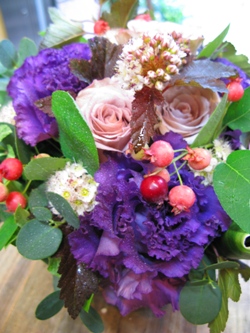 (写真はお祝いアレンジ。トルコギキョウ、ジューンベリー、