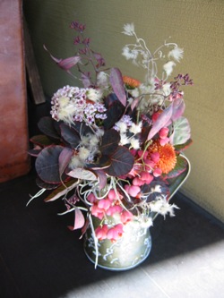 ↑の写真は、きょうの花教室で生徒さんがつくった”秋のブーケ