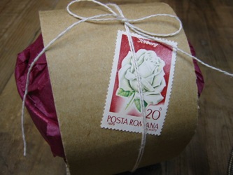 さりげなく貼ってあるルーマニアのバラの古切手が素敵ですね。)