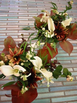 (写真は、今日10/4に結婚式を挙げられたお2人にお届けしたブーケ。