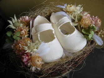 (写真は出産のお祝い。ベビーシューズをかごに入れてドライの