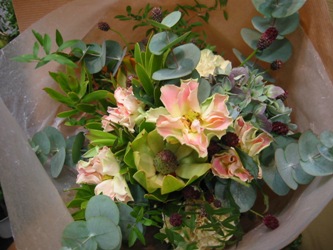 (写真は誕生日のお祝いブーケ。グリーンといってもいろいろあるなぁ。