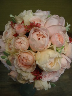 (ブーケは、バラ「アンブリッジローズ」、「トワカップ」、