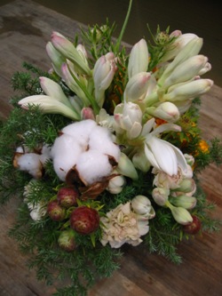 チューベローズ、コットン、マリーゴールド、リューカデンドロン、