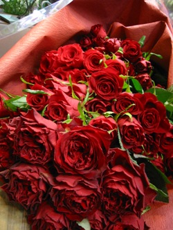 (写真は還暦のお祝い、バラ60本のブーケ。写真手前から「839(名称未定)」、
