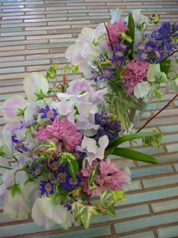 (写真は本日の活け込み。ヒヤシンス、スイートピー「あじさい」、