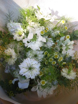 スカビオサ「オクロレウカ」、スイートピー、ブプレリウム など。)