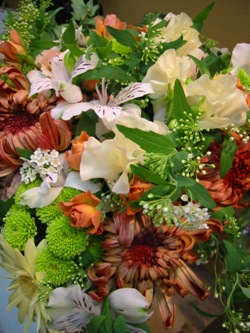 (写真は送別用ブーケ。菊「ココア」・「フロッギー」、スイートピー、