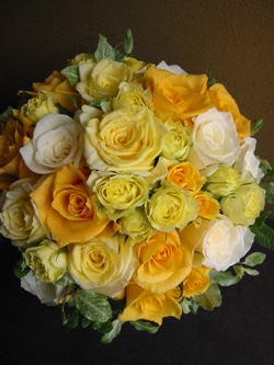 (写真は本日お届けしたウエディングブーケ。バラ「ジューク」・