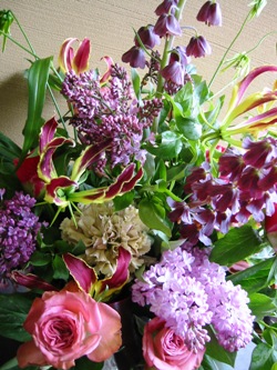 いつも自宅玄関にアレンジを飾ってくれてます。シャクヤク、ライラック、