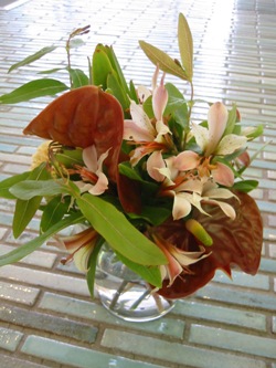 (写真は本日のカフェの活け込み。アルストロメリア「チェリーブロッサム」、
