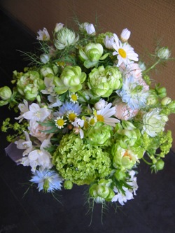 スノーボール、二ゲラ、デルフィニウム、マーガレット、マトリカリヤ。