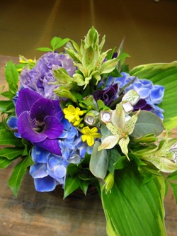 (写真はお供えアレンジ。トルコギキョウ、グラジオラス、あじさい、