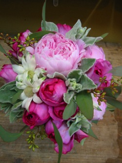(写真はウェディングのお花。シャクヤクのクラッチブーケ。