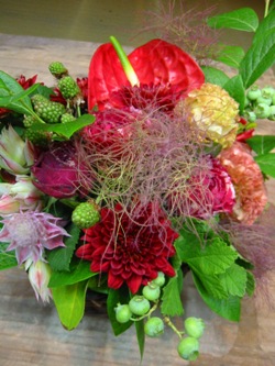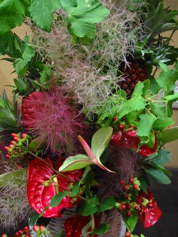 トルコギキョウ、セルリア、アンスリウム、スモークツリー、