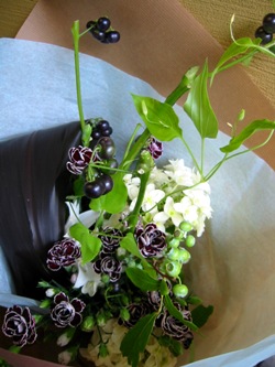 (写真は男性へのブーケ。ブラックパール、あじさい、利休草、