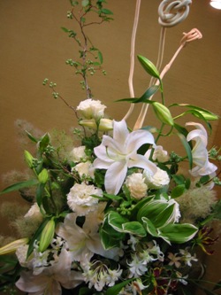 (写真は、ショップオープンのお祝いアレンジ。ゆり「カサブランカ」、