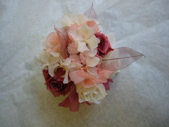 (写真は、プリザーブドフラワーのコサージュ。8月の花教室で
