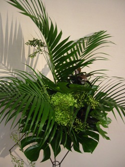 (写真は本日の活け込み、美容室。モンステラ、アレカヤシ、