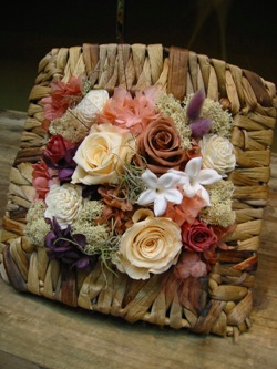 (写真はプリザーブドフラワーの壁掛けアレンジ。)