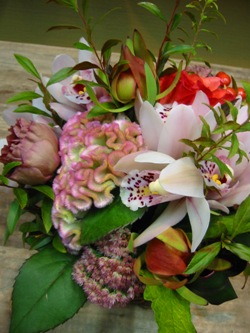 (写真は敬老の日の贈り物アレンジ。シンビジウム、バラ、ガーベラ、