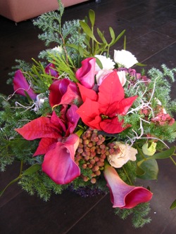 (写真はクリスマスプレゼントのアレンジ。カラー、バーゼリア、