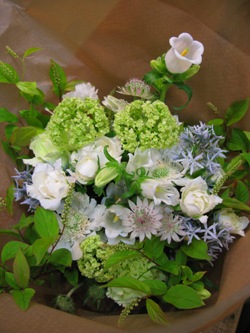 (写真は母の日ブーケ。カーネーション、カラー、シャクヤク、リョウブ、