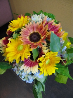 (写真はウェディングブーケ。ひまわり5種類、ライステリア、
