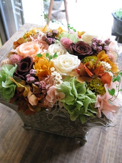 きょうの写真↑↓は、プリザーブドフラワーのアレンジです。