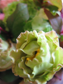 右↑:バラ「シェドゥーブル」・「アバランシェ」、モンステラ。)
