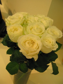 (写真↑はお祝いアレンジ。バラ「ポエトリーブーケ」、スカシユリ、