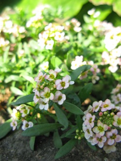きょうは”アリッサム”。こぼれ種で芽を出し、玄関先でかわいく