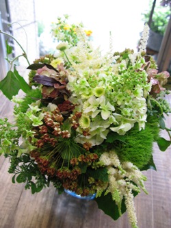 (写真は活け込み用ブーケ。カシワバアジサイ、ディアボロ、