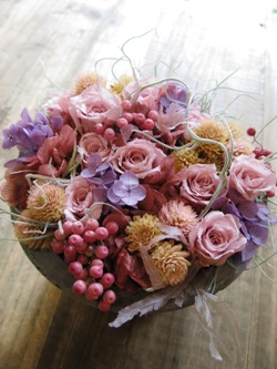 (写真は結婚のお祝い、プリザーブドフラワーのアレンジ。)