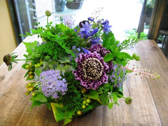 (写真は”元気になってね!アレンジ。スカビオサ、トルコギキョウ、