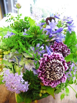 トルコギキョウ、スカビオサ、アジアンタム、オレガノ、アジサイ、