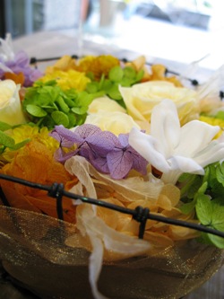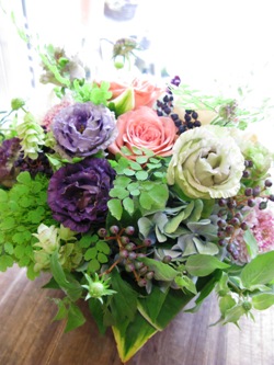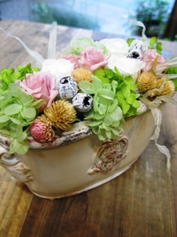 (写真は2枚ともプリザーブドアレンジ。夏はプリザもいいですよ!)
