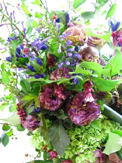 (写真はお祝いアレンジ。ブルーベリー、ライステリア、アナベル、