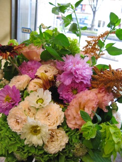 (写真は結婚のお祝いブーケ。全ておまかせ。八重咲きの