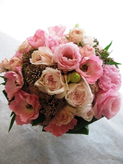 (写真は結婚式でのブーケプルズ用ブーケ。バラ「ユカカップ」・