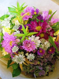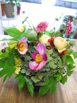 水引草とワレモコウ。また別の籠にはツルウメモドキ。ノコンギクや