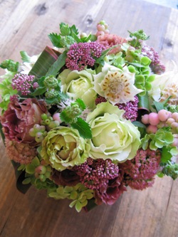 トルコギキョウ「アンバーダブルマカロン」、セダム、セルリア、アナベル、