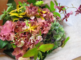 なでしこ「ブラックジャック」、オンシジウム、秋色アジサイ、ティナス、