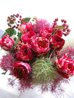 (写真はバラ「ラナンキュラ」のブーケ。他にスモークツリー、