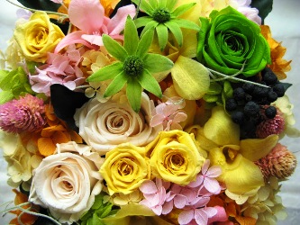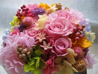 (写真は3枚ともプリザーブドフラワーのアレンジ。上から誕生日の