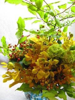 (写真はきょうの活け込み。モカラ2種類、ビバーナム・コンパクタ、